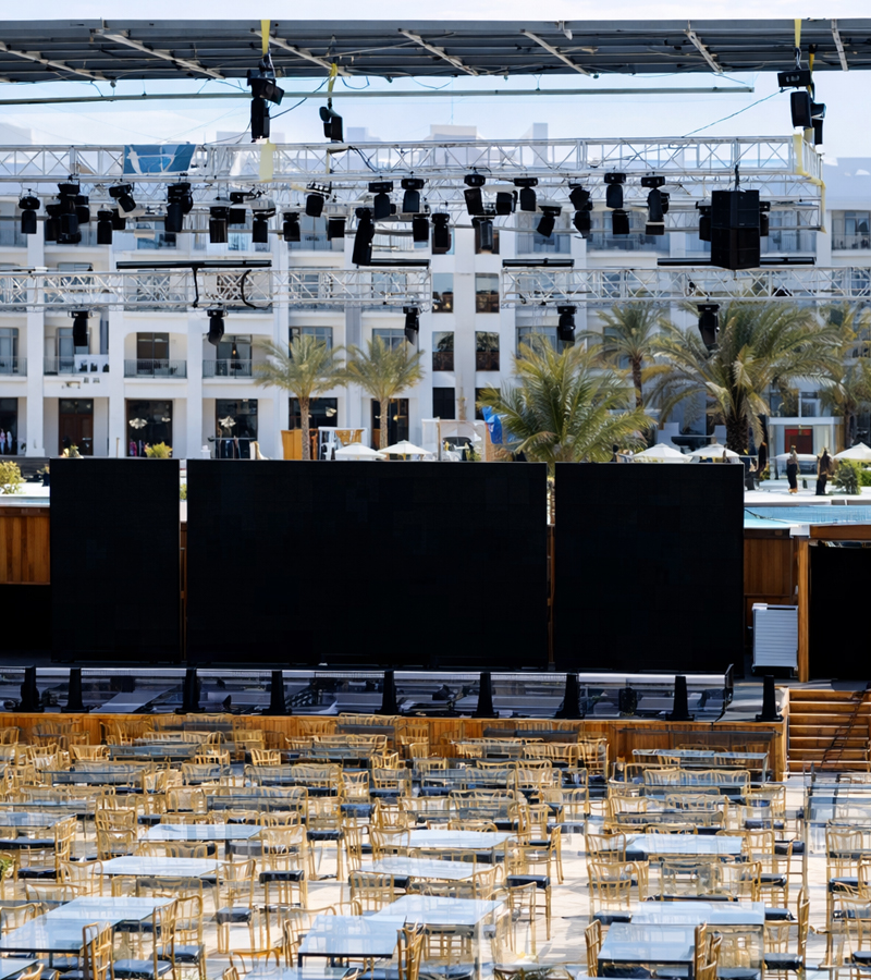We have a 60,000 sq. ft. warehouse for stocking and in-house manufacturing with an efficient and experienced team of 65 executive members, 85 permanent production members making the event to run smoothly like how clock works.